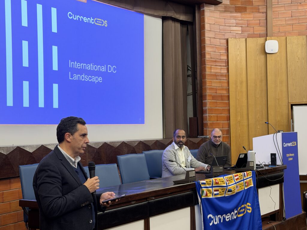 The morning sessions proceeded with two keynote speakers from EDP, Portugal’s leading electric utility: Mário Simões, Internal Delivery Lead Expert, and Pedro Ferreira, Head of Innovation in Networks. Their contribution focused on the critical role of DC technologies in modernizing distribution networks and integrating renewable energy.